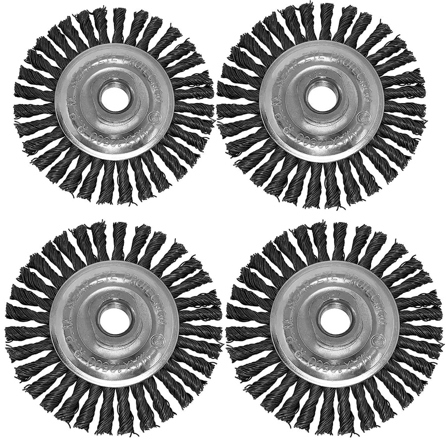 With a knotted design adding maximum aggressiveness to the wires, this wire wheel brush attachment type is circular in shape to add precision to your project and to fit into corners. Used for treating hard metals such as iron, stainless steel, this attachment prepares and conditions rough surfaces through heavy duty cleaning action, deburring, and removing rust.