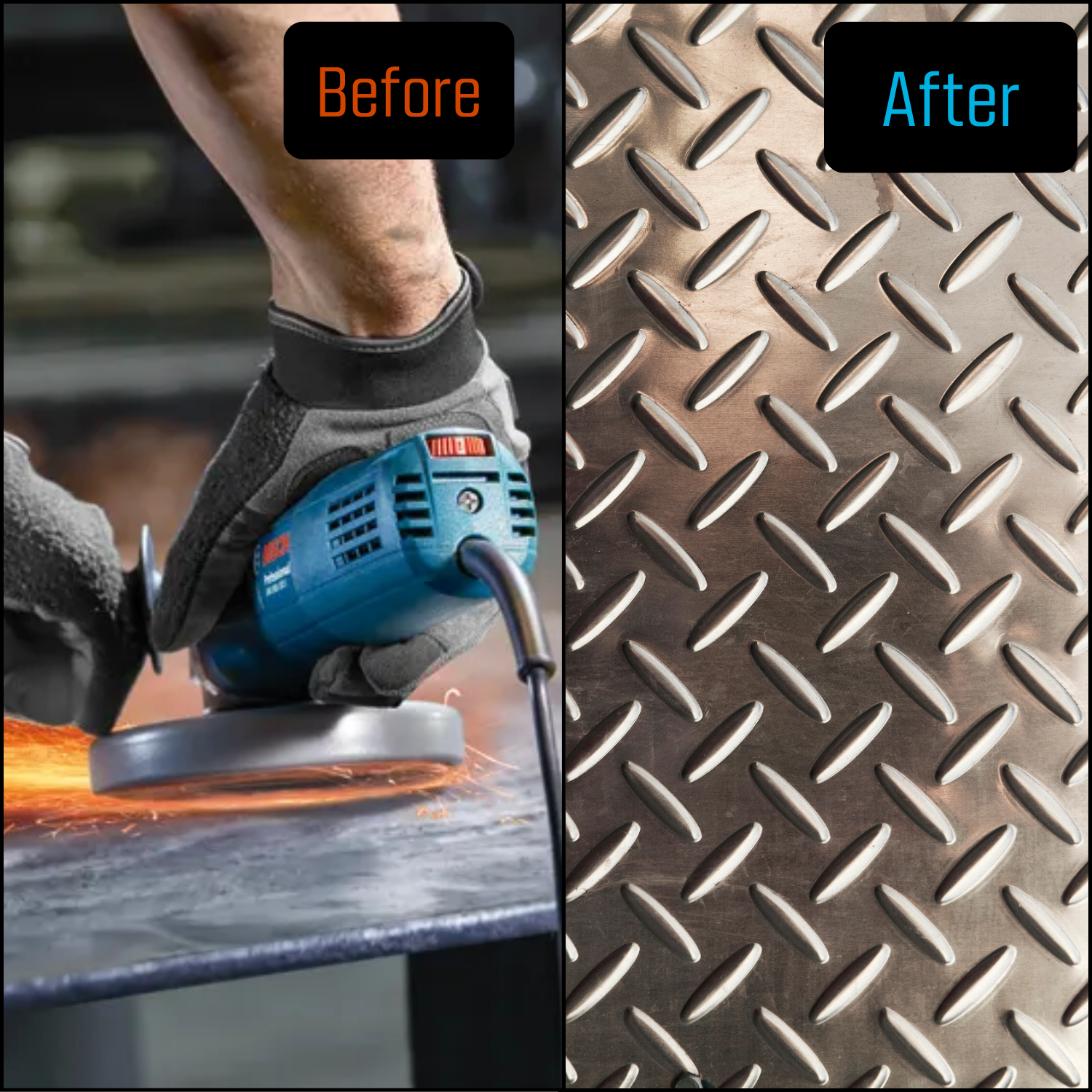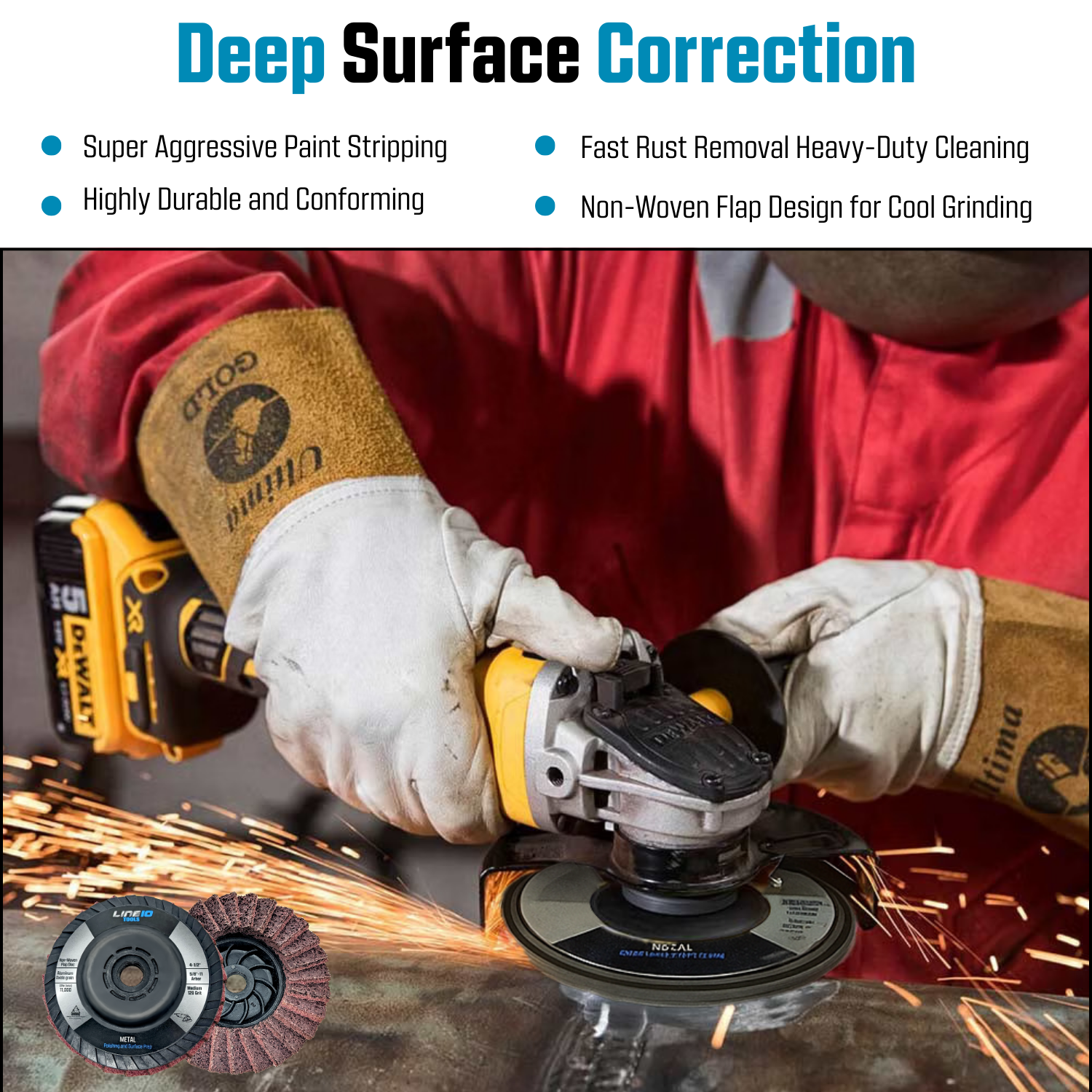 Universal 4-1/2 inch diameter discs with arbor threading that fits most common North American Angle Grinders, Ideal for metal fabrication shops and autobody workshops. Suitable for grinding, deburring, sanding, polishing, and finishing most metals